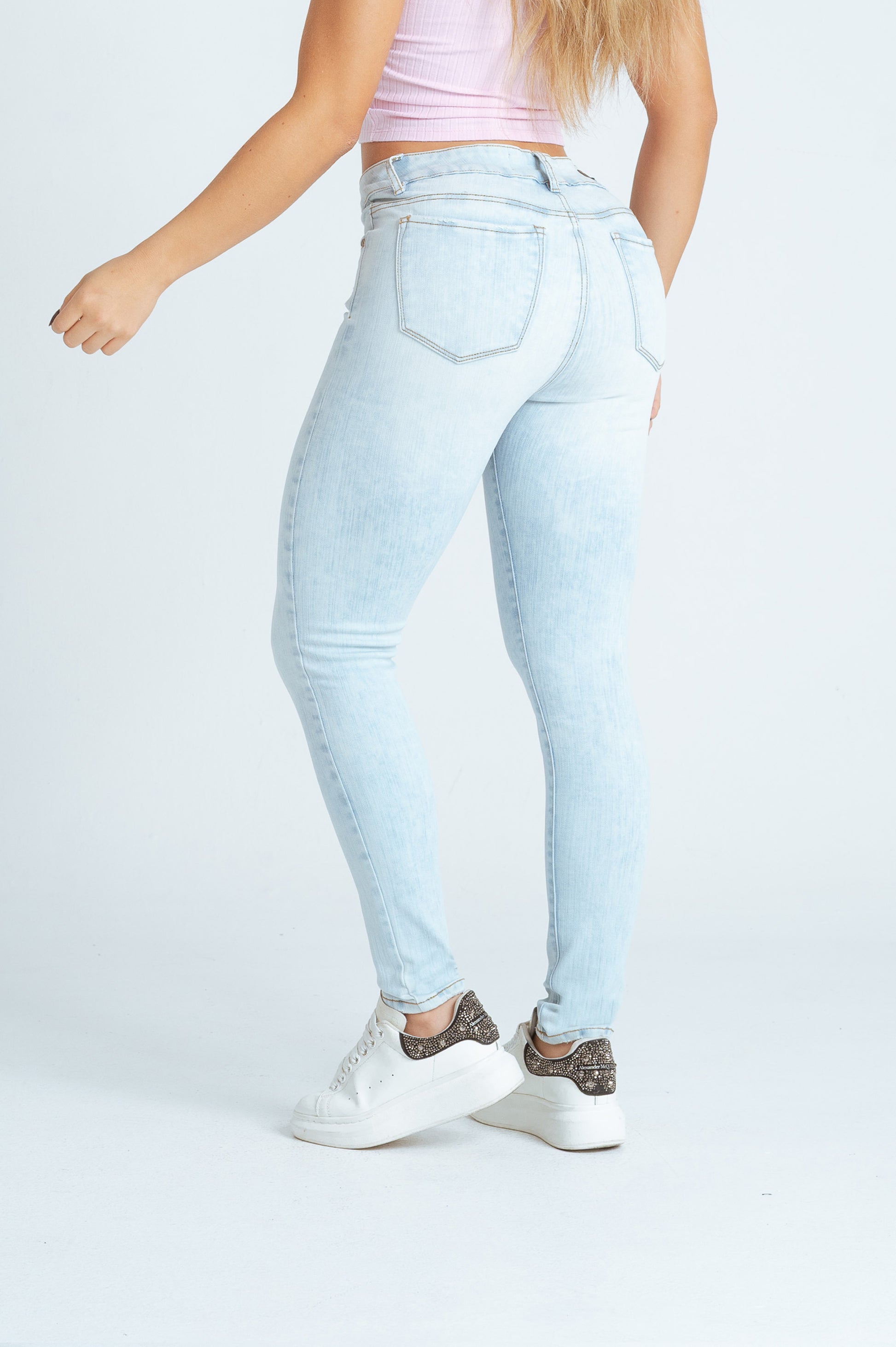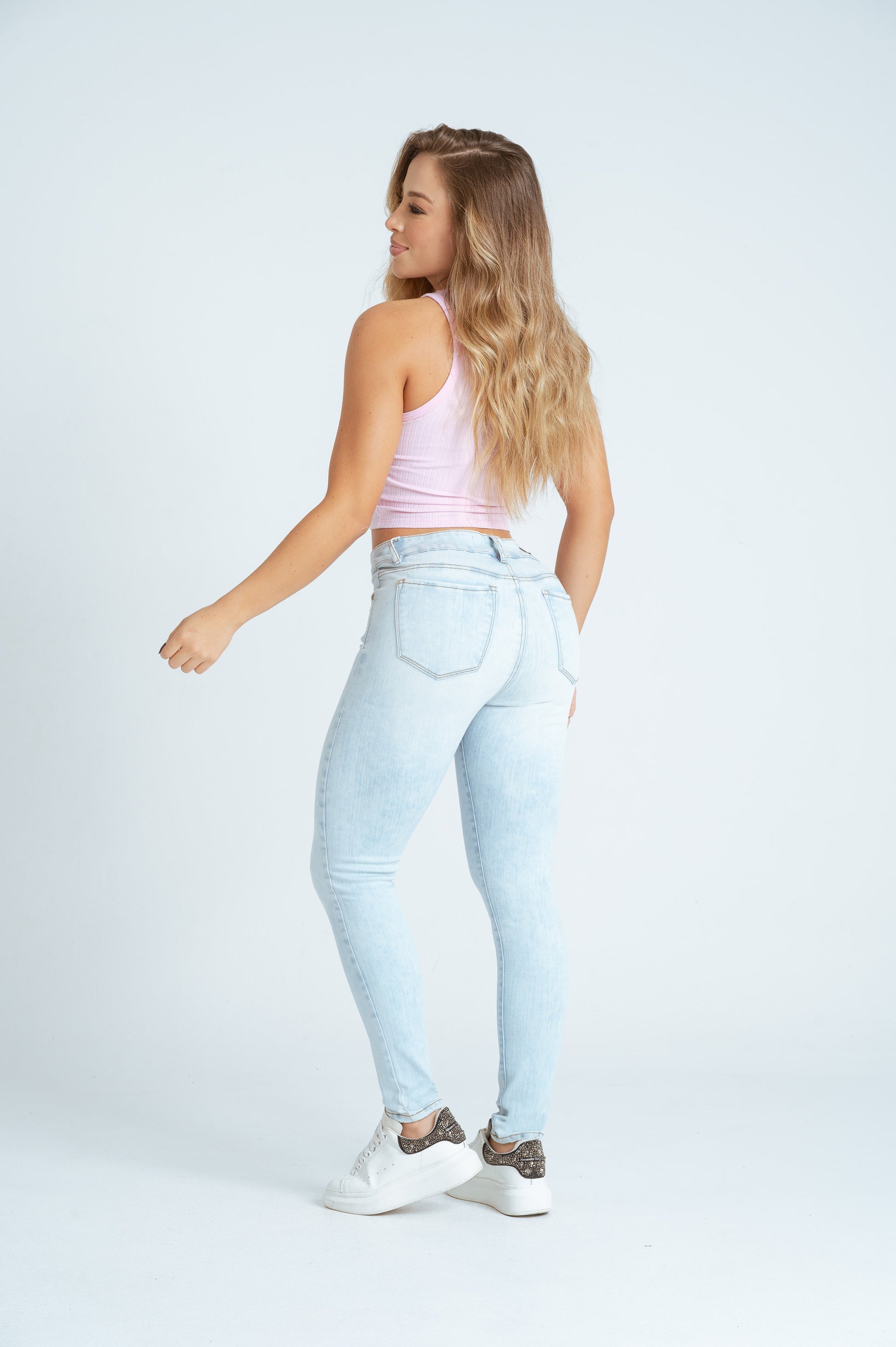 Jeans skinny , tono azul claro , bota clasica , strech.