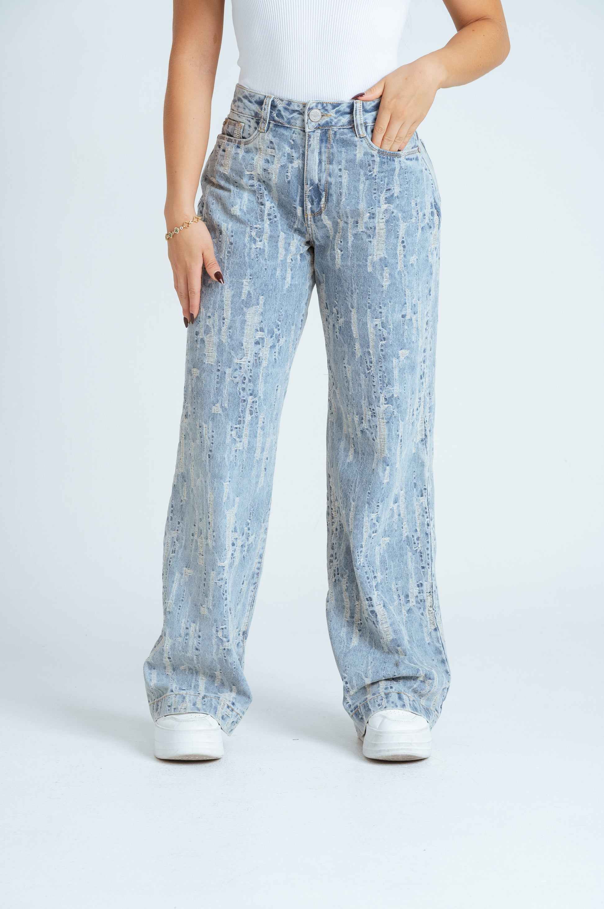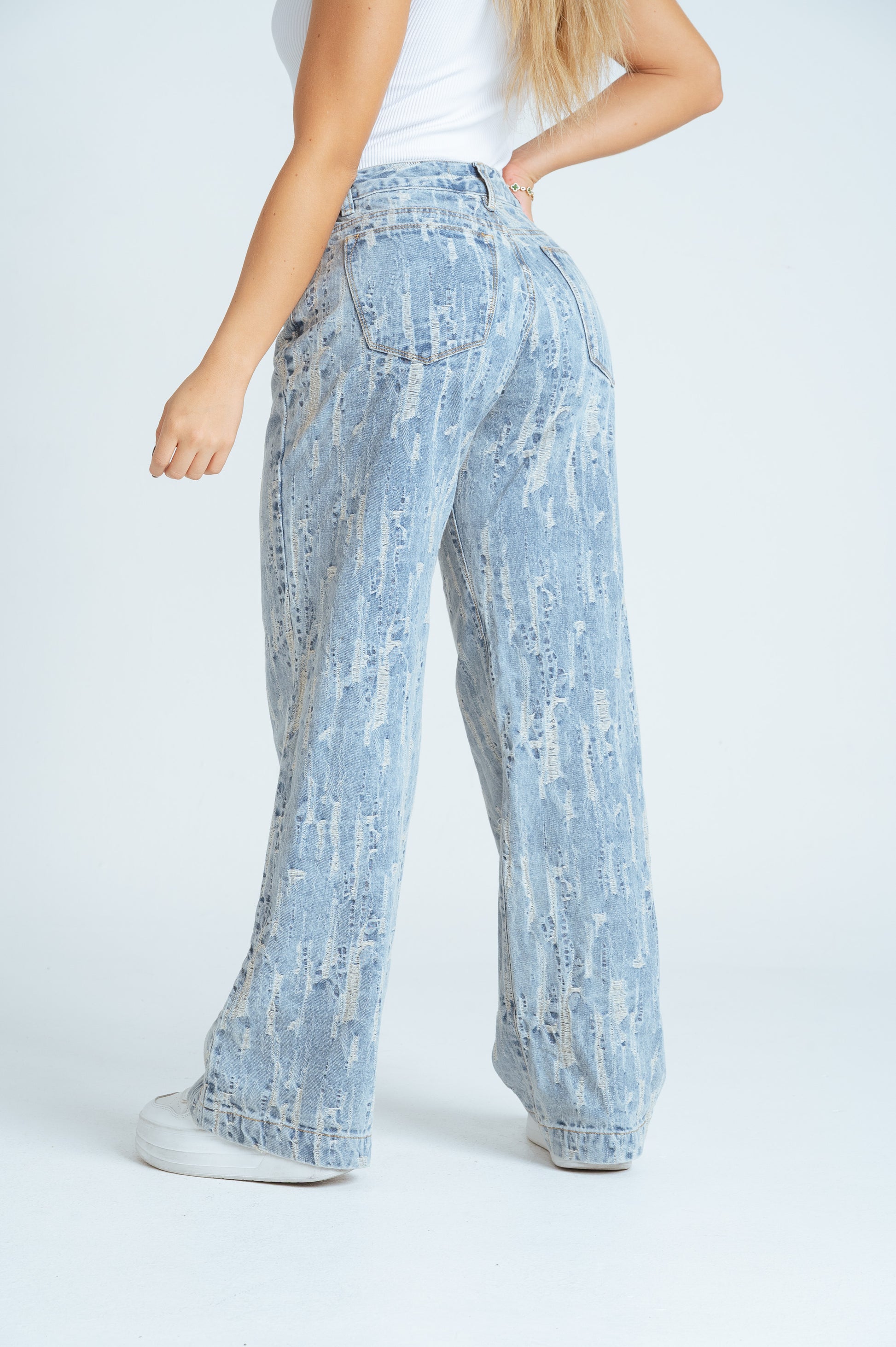 Mom flare , tono azul claro , tela exclusiva , bota ancha ,rijido.