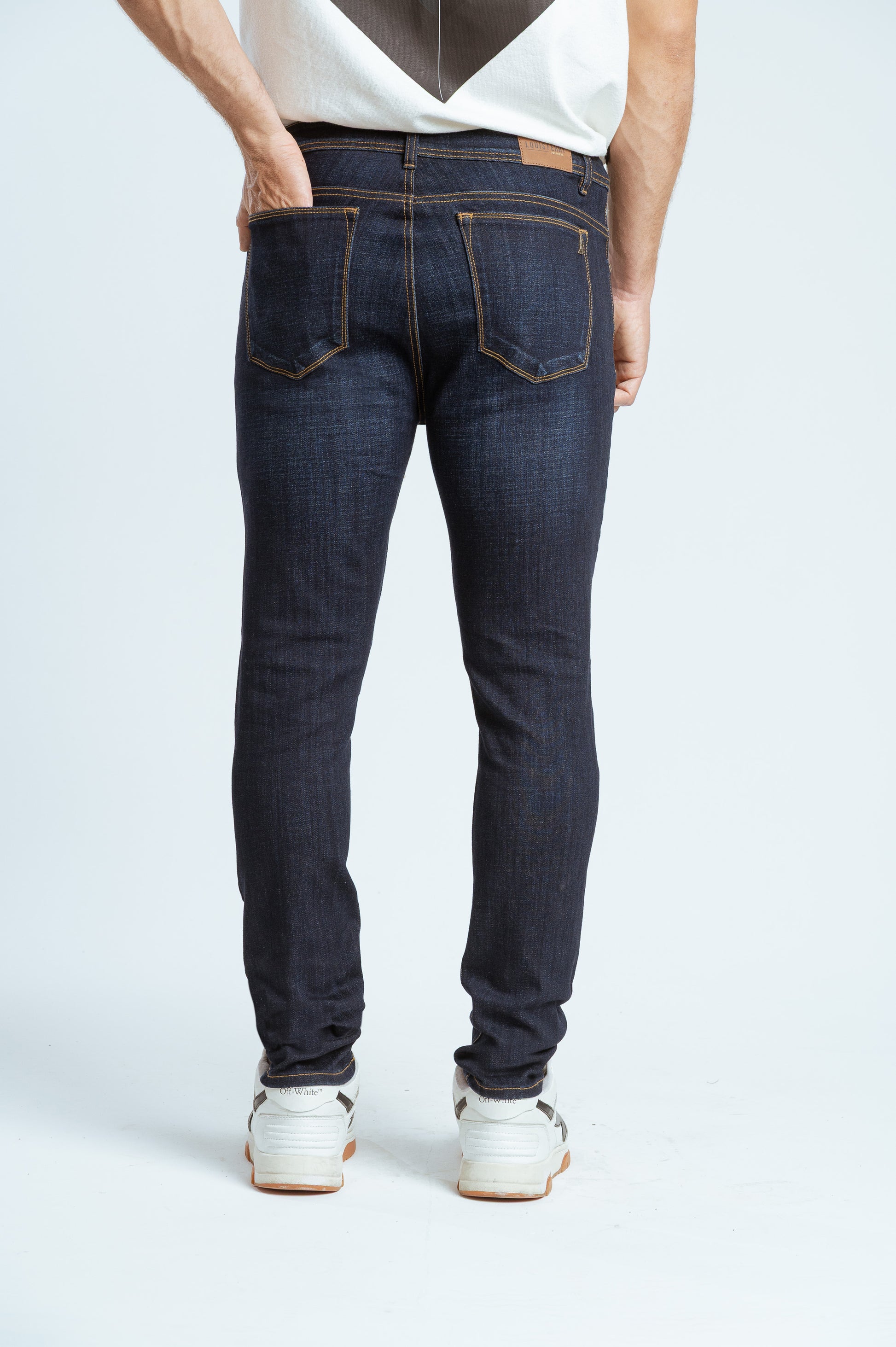 Skinny jeans hombre , tono azul oscuro , bota clasica ,strech.