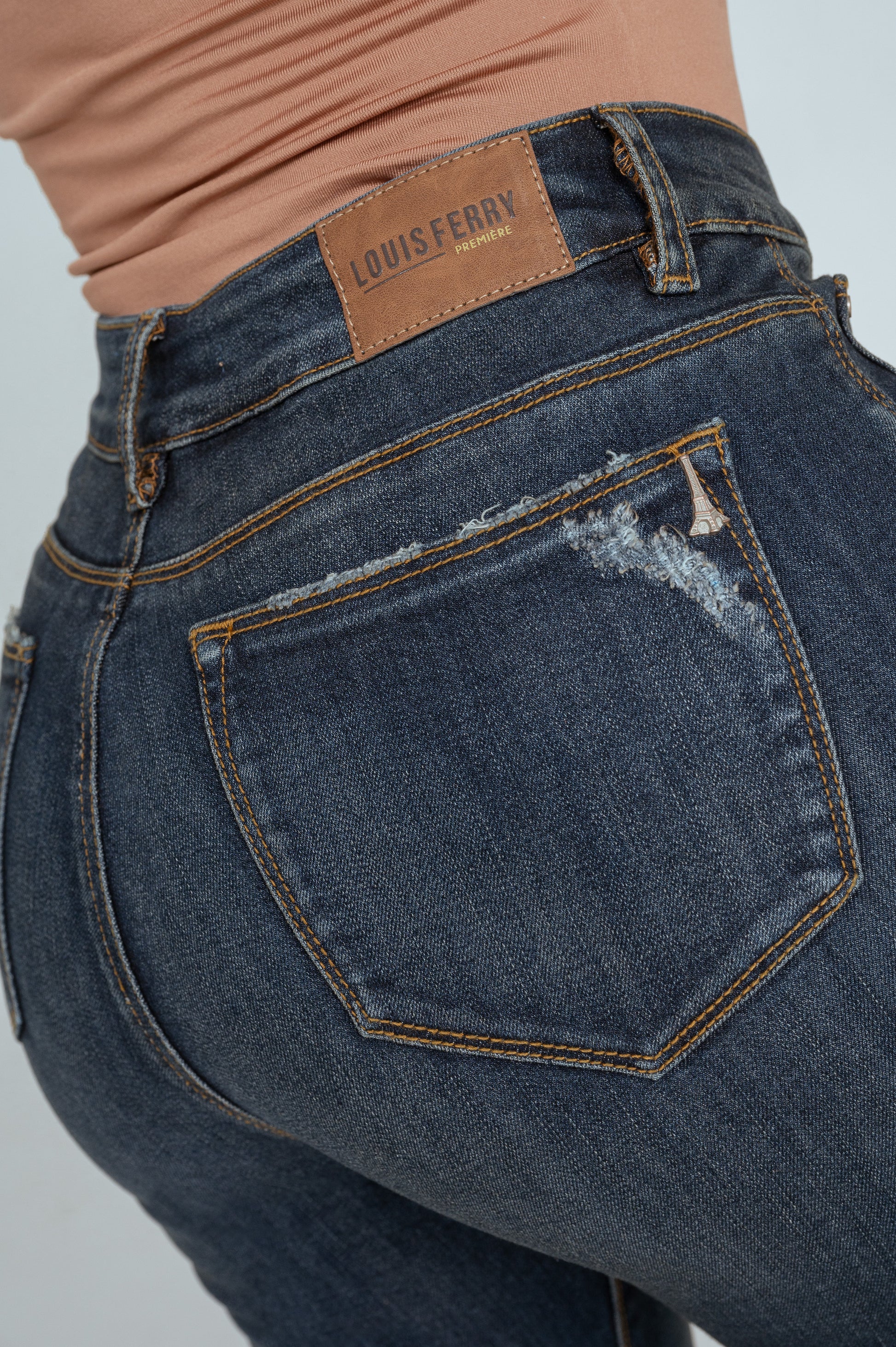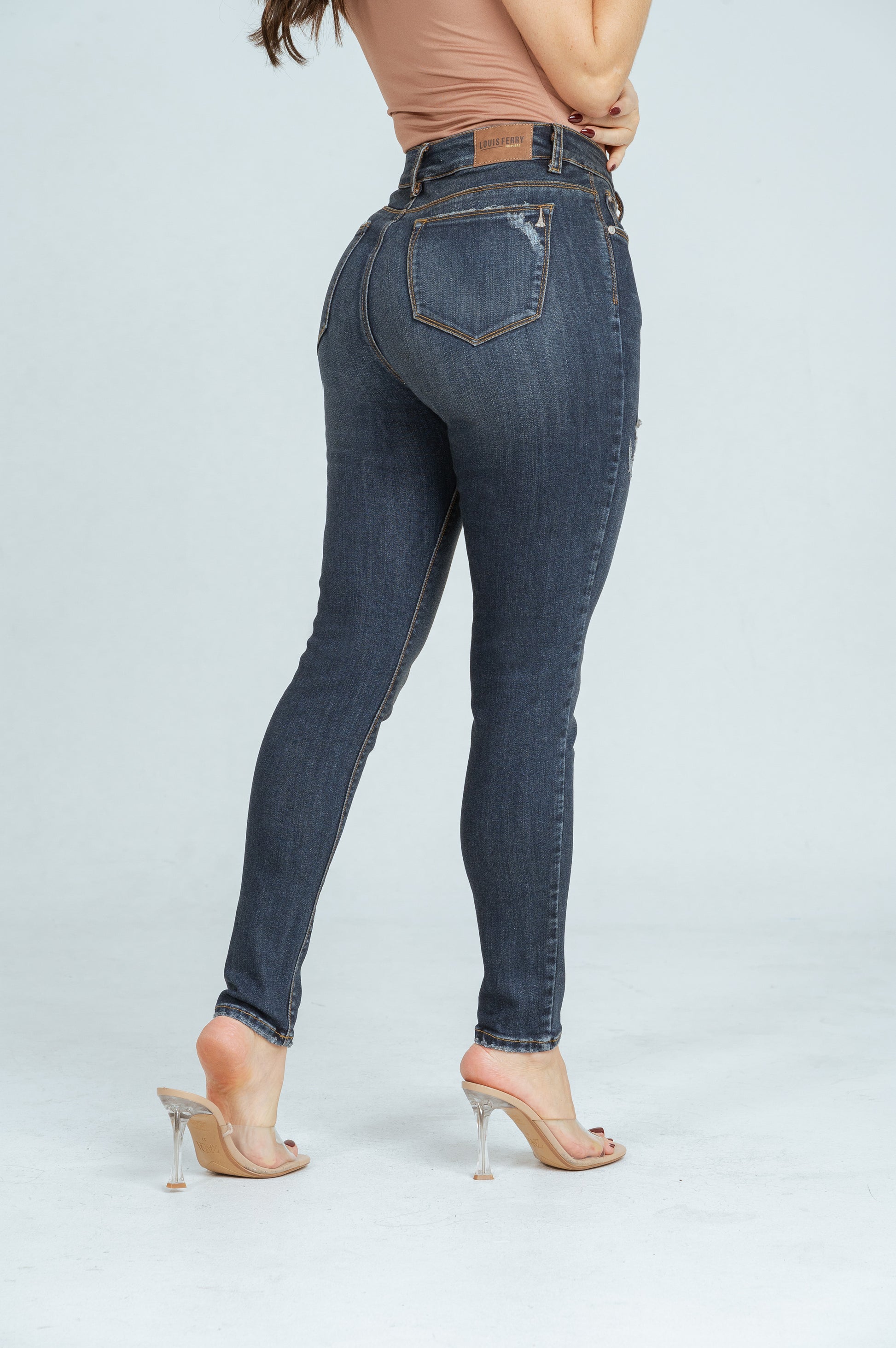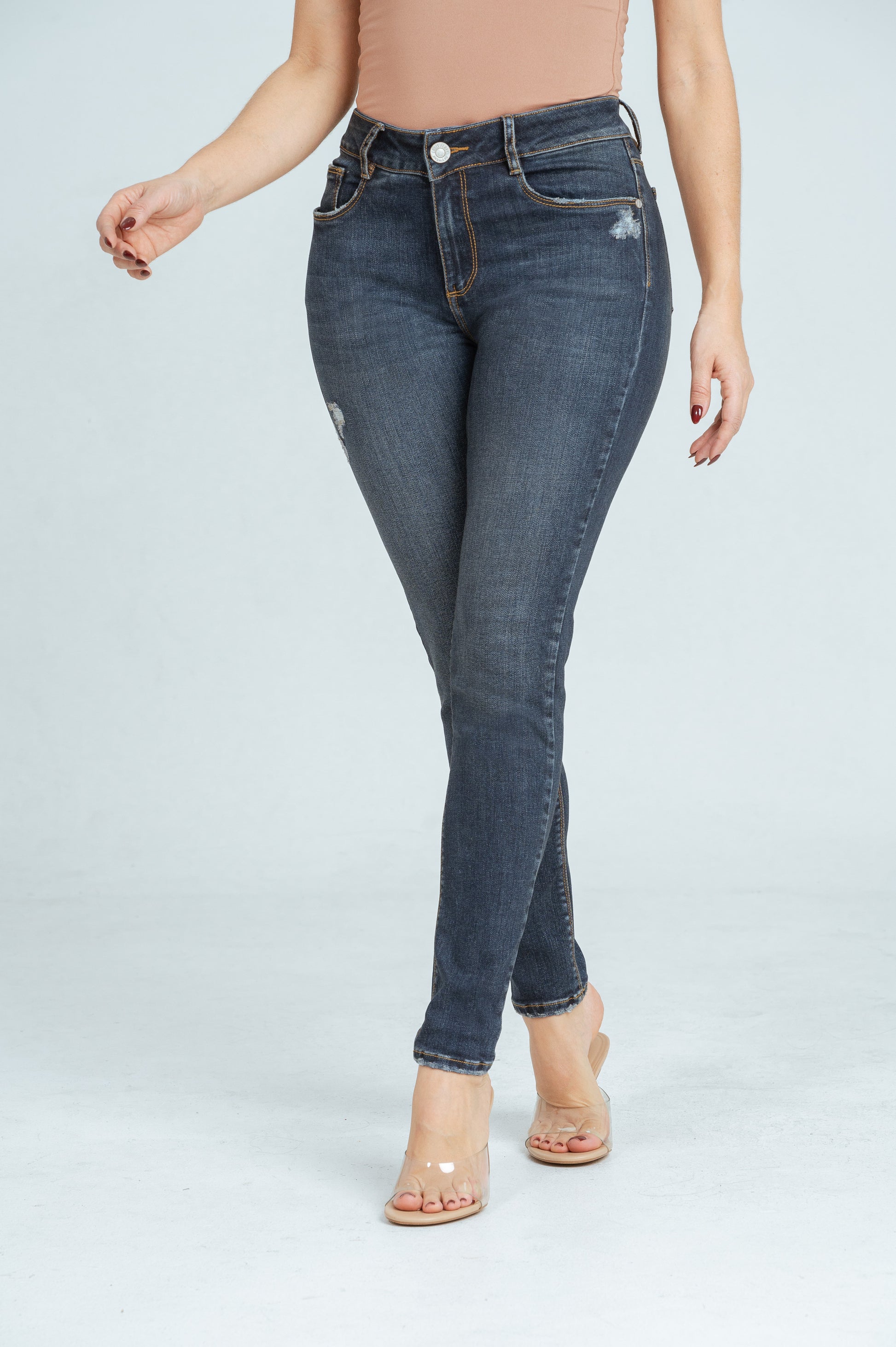 Skinny jeans , tiro medio , tono azul medio ,bota clasica . strech.