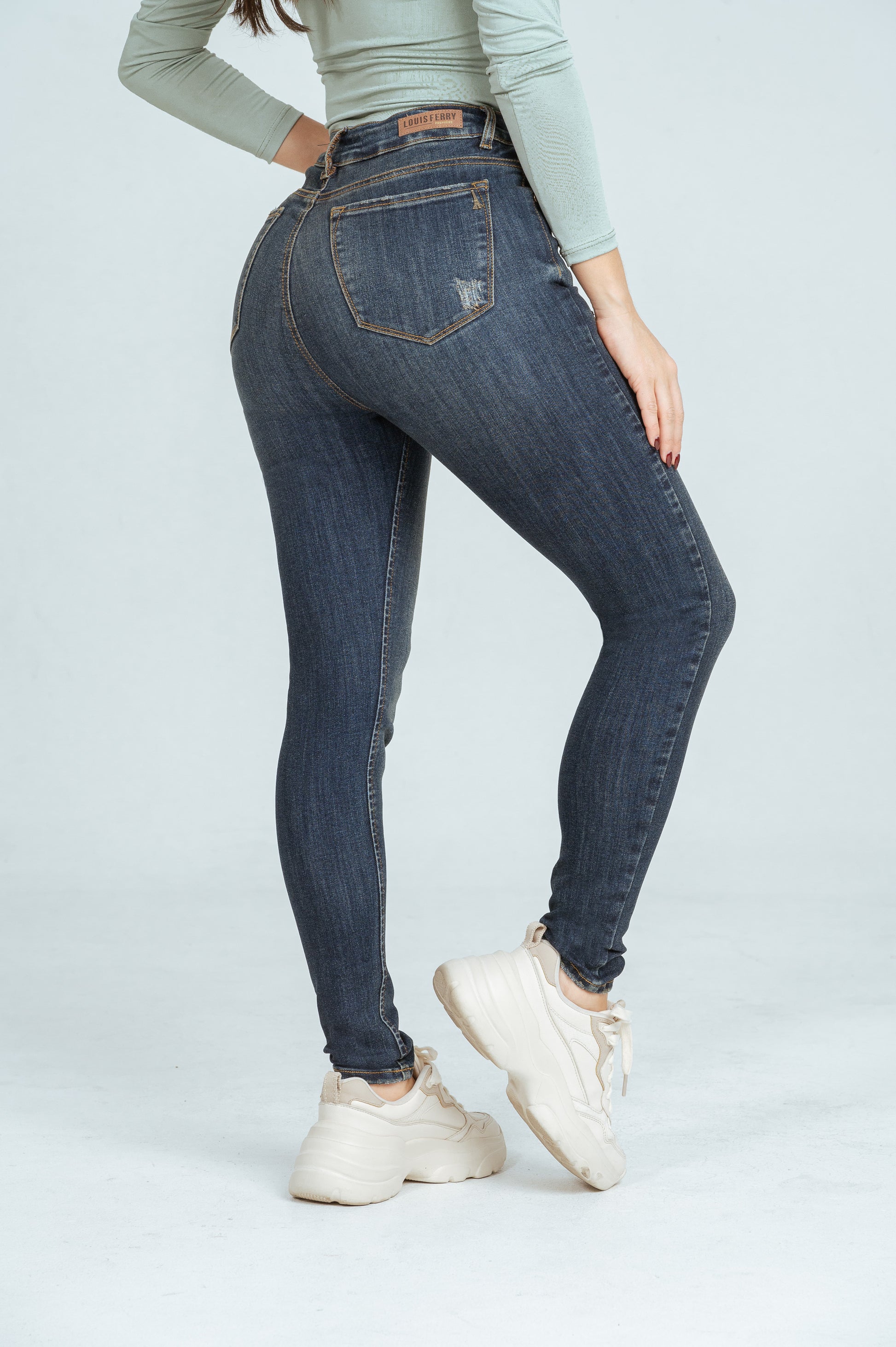 Skinny jeans , tono azul oscuro , tiro medio , bota clasica , strech.