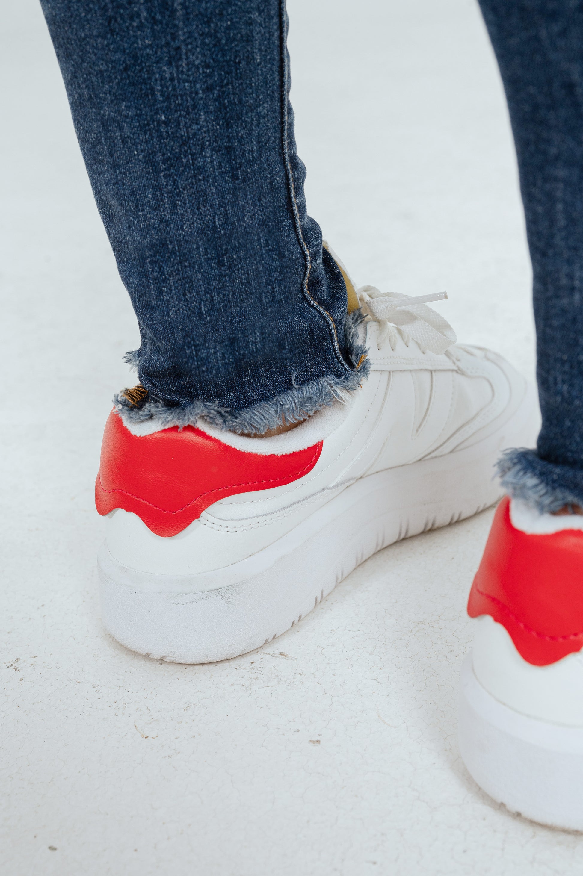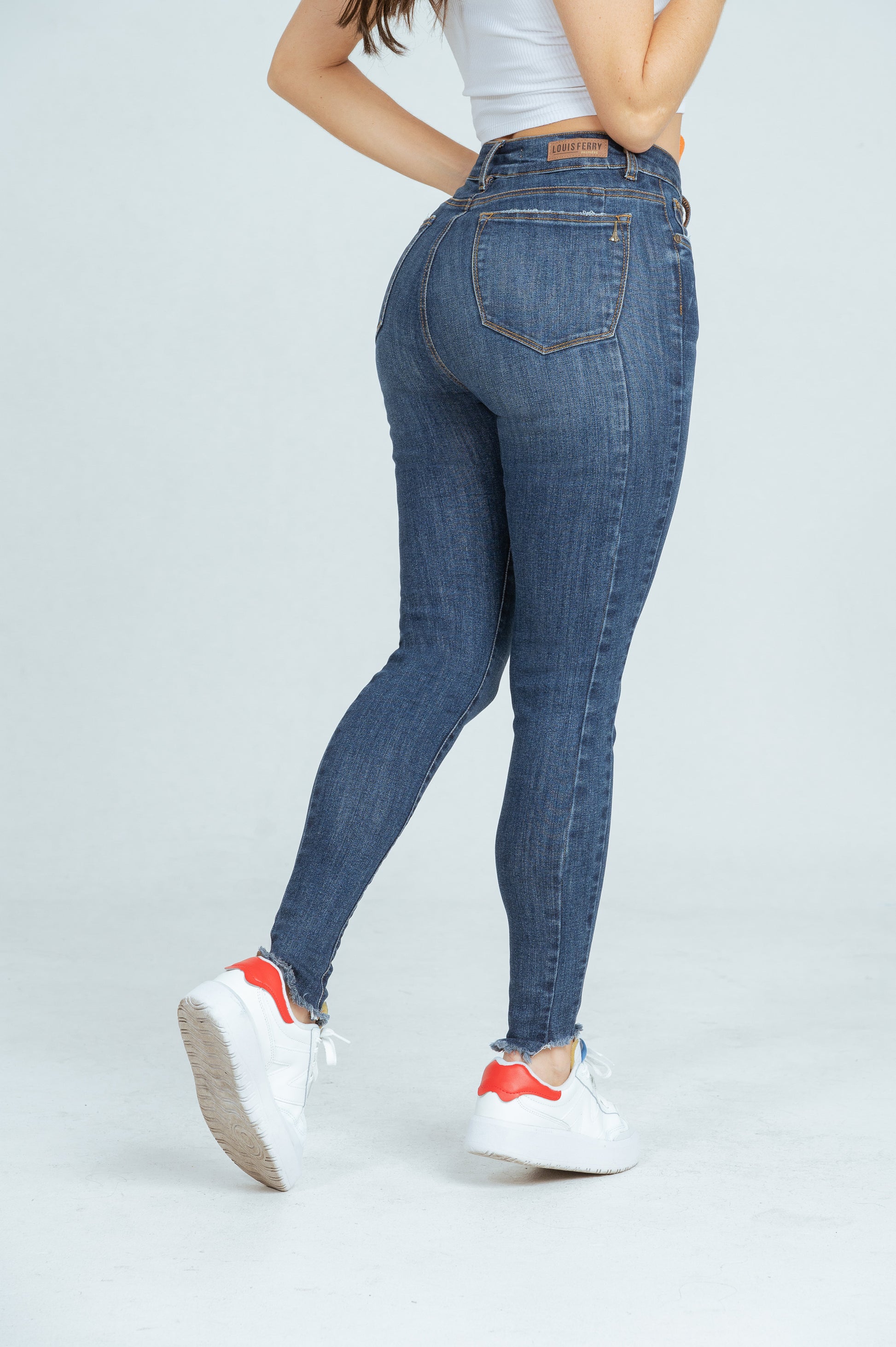 Skinny jeans , tono azul medio , bota desflecada ,tiro medio ,strech.